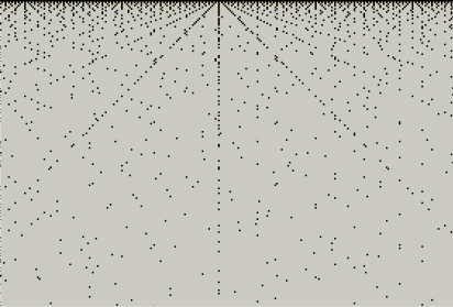 While gazing at these divisor dots, rendered in white on a black background (as I prefer to render them on the computer screen), I have the sensation of being an ancient astronomer trying to find some order in the chaos. In the illustration below of a starry sky at dusk, it looks as if the stars are scattered randomly, but they are actually plotted out according to this very simple rule.